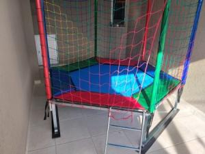 Cama elástica colorida e rosa